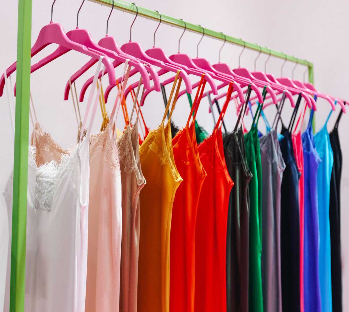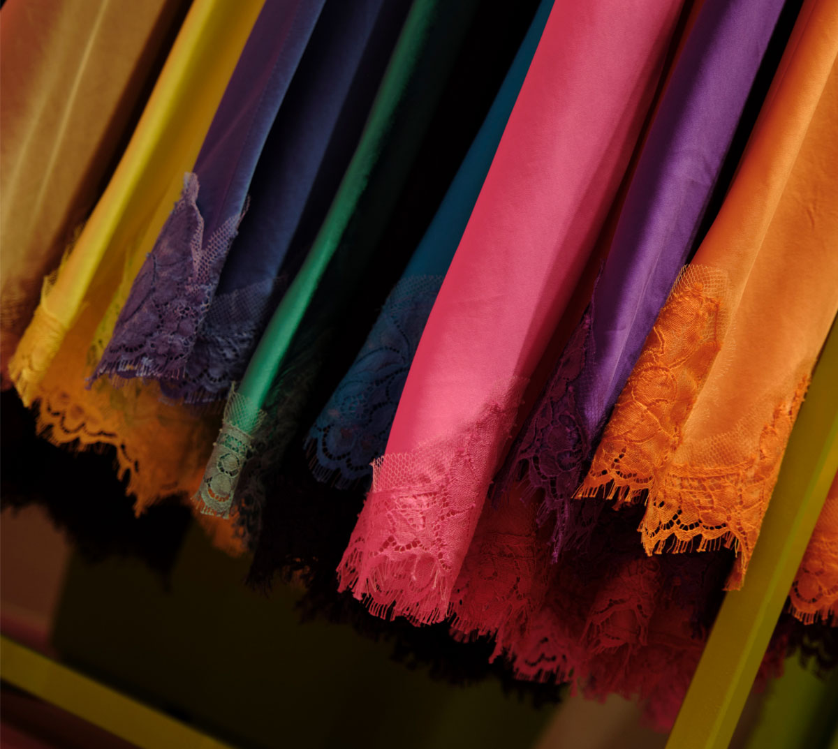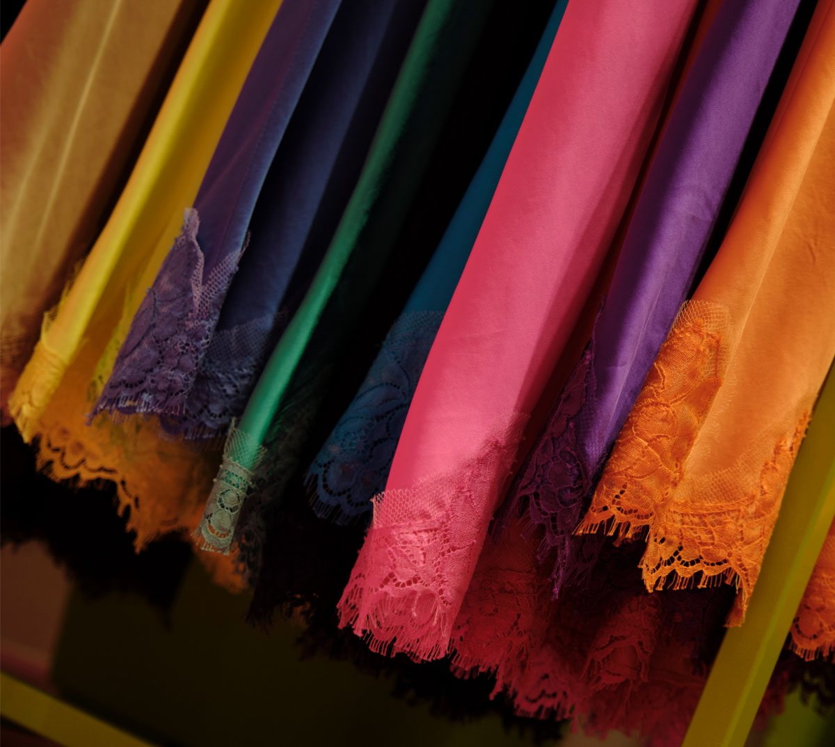Nasce la sottoveste: in 100% seta e pizzo francese dei telai di Calais, viene prodotto in più di 100 colori questo iconico capo, che fa ancora parte delle collezioni di Pink Memories. Attualmente lo slip dress è stato contemporaneizzato con l’uso della viscosa elasticizzata e una silhouette più aderente, ma è sempre protagonista nonché best-seller delle collezioni, sia primavera/estate che autunno/inverno.